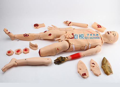 ■ XY-110高级创伤模型是在XY-2000高级组合式基础护理人训练模型的功能基础上进行升级,除了XY-2000型的全部功能外,还增加了创伤护理功能,增加了现场创伤处理及护理培训的真实感。